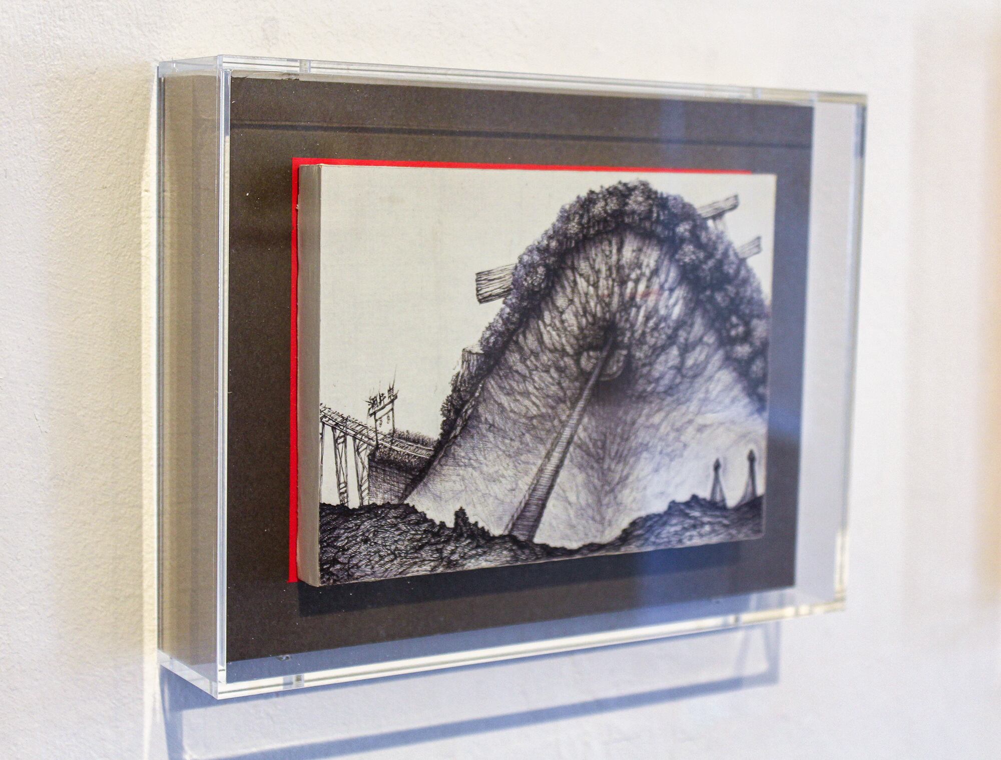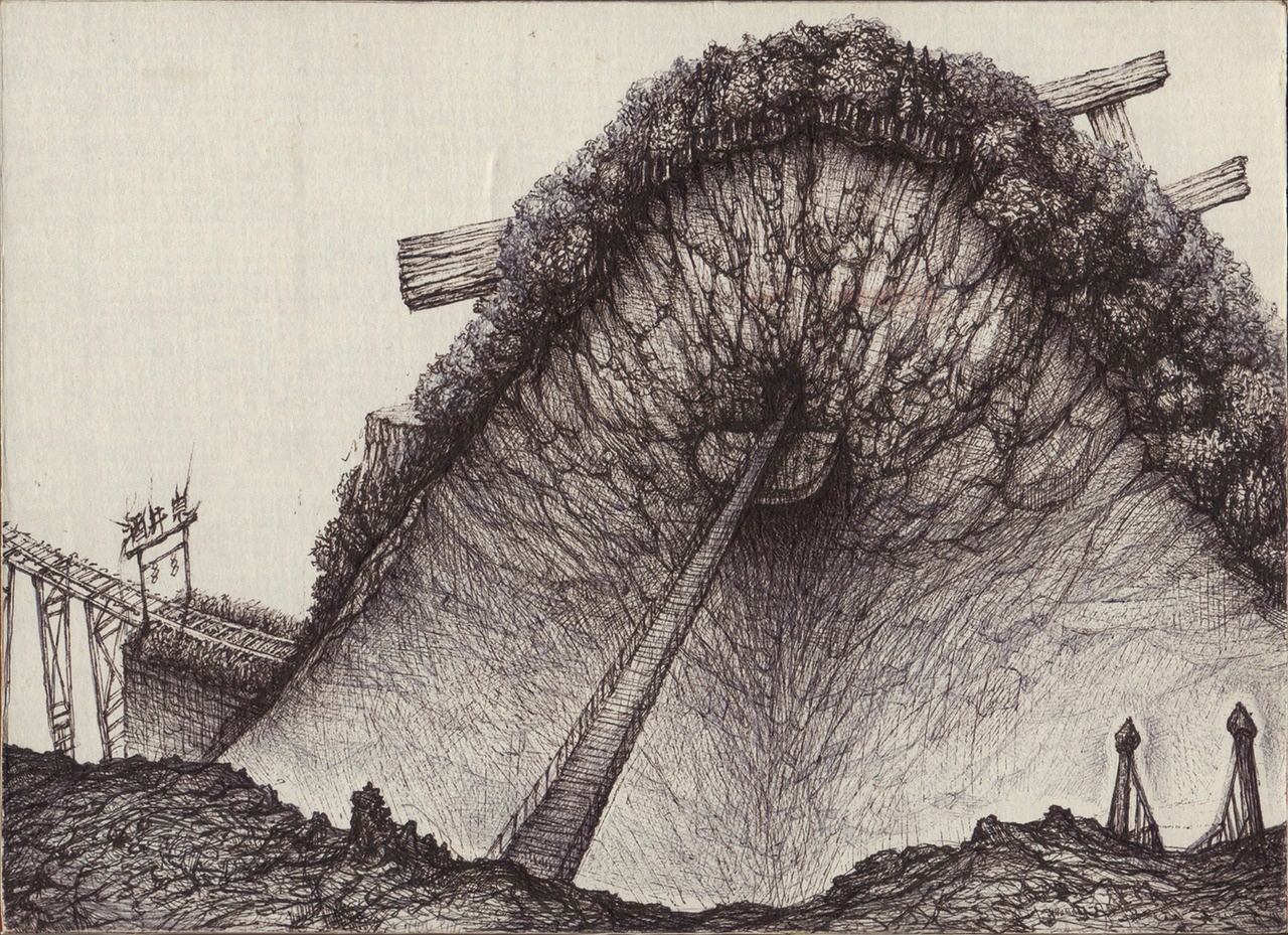 奥多摩の旅では、削られた山の破片、ダム建設に使われた廃線、鍾乳洞などの強烈な記憶を描きました。大いなる自然、あるいは捨てられて自然に還る人工物は、文明の中で生きていることが揺らいでいるかのような印象を与えます。