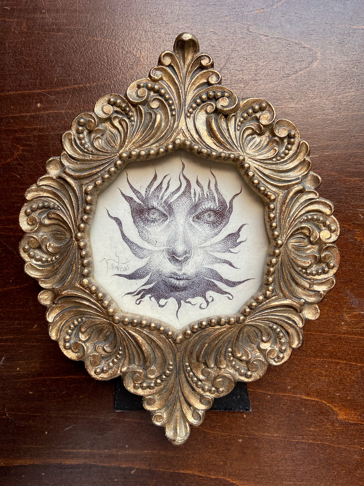 太陽の紅炎をイメージした肖像。額の装飾からインスピレーションを得ました。